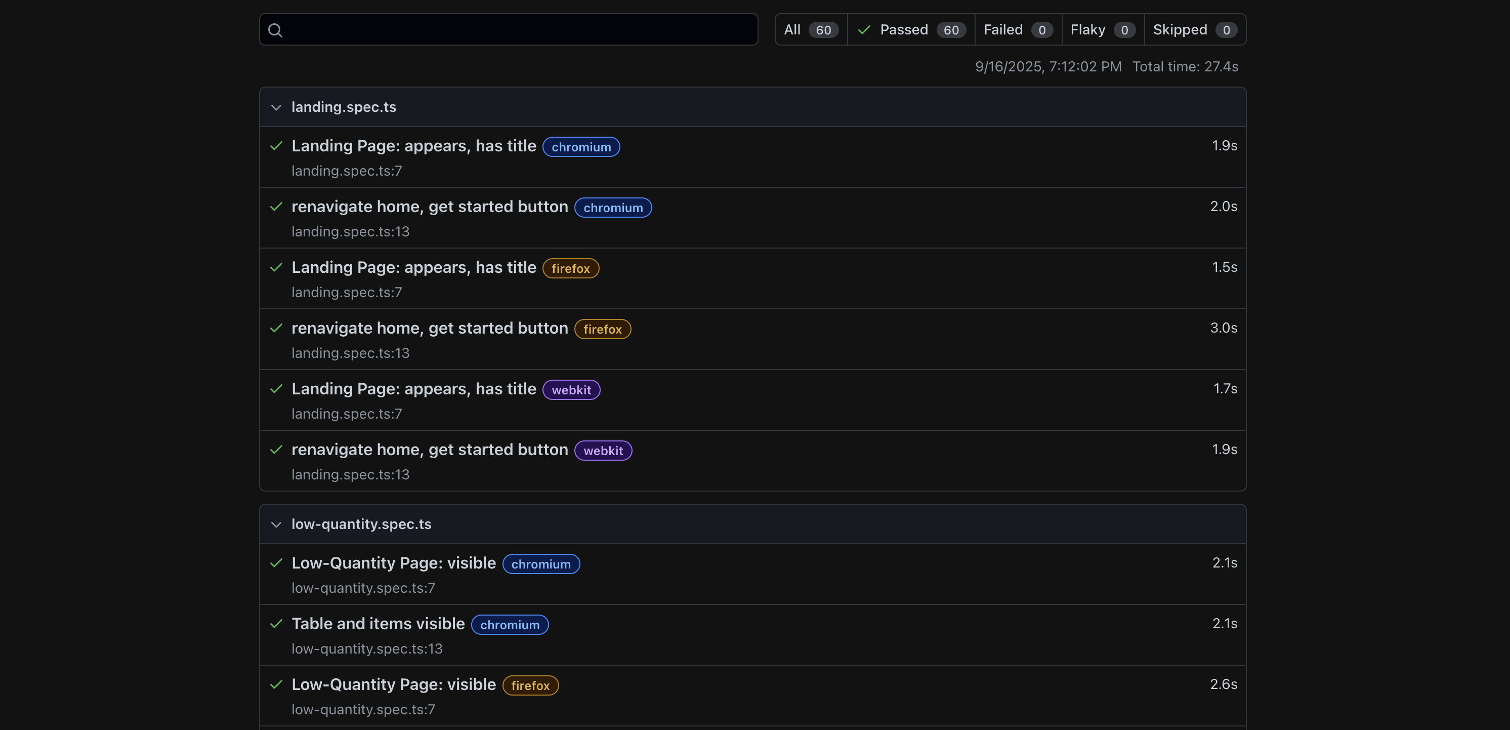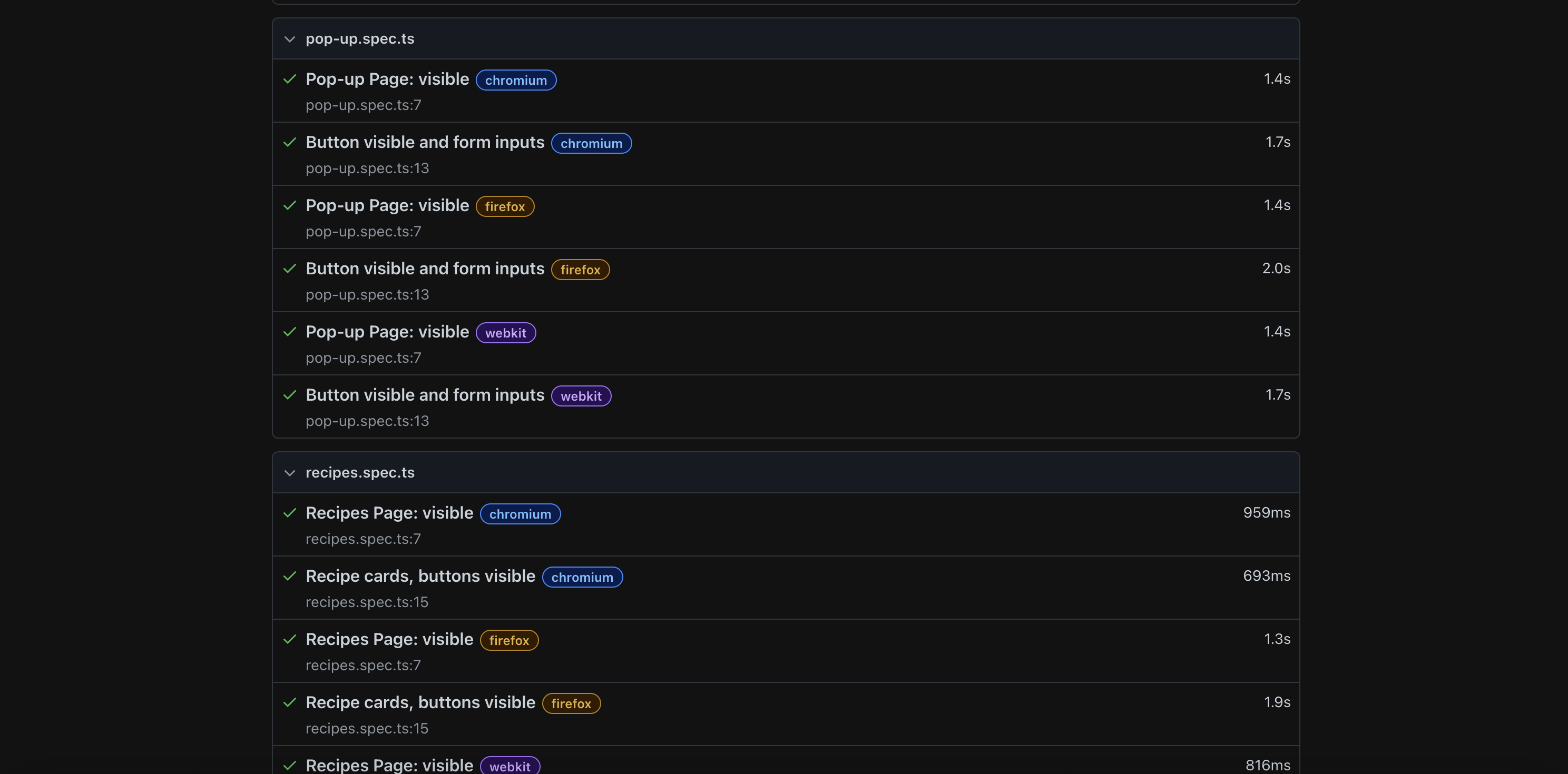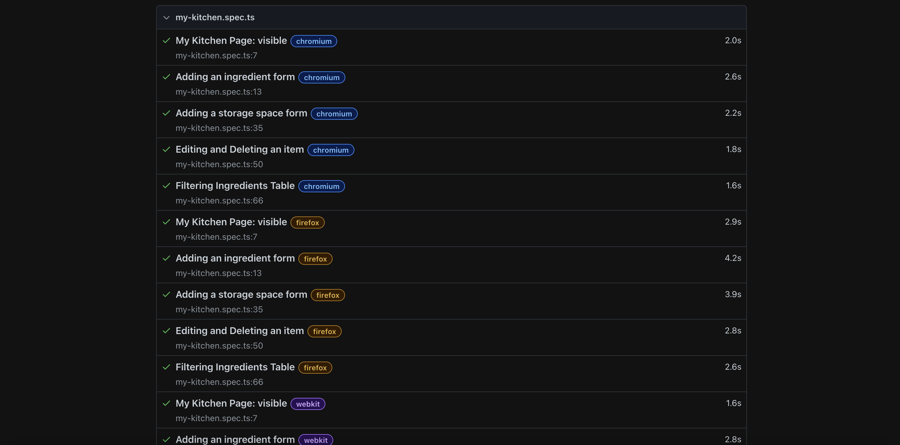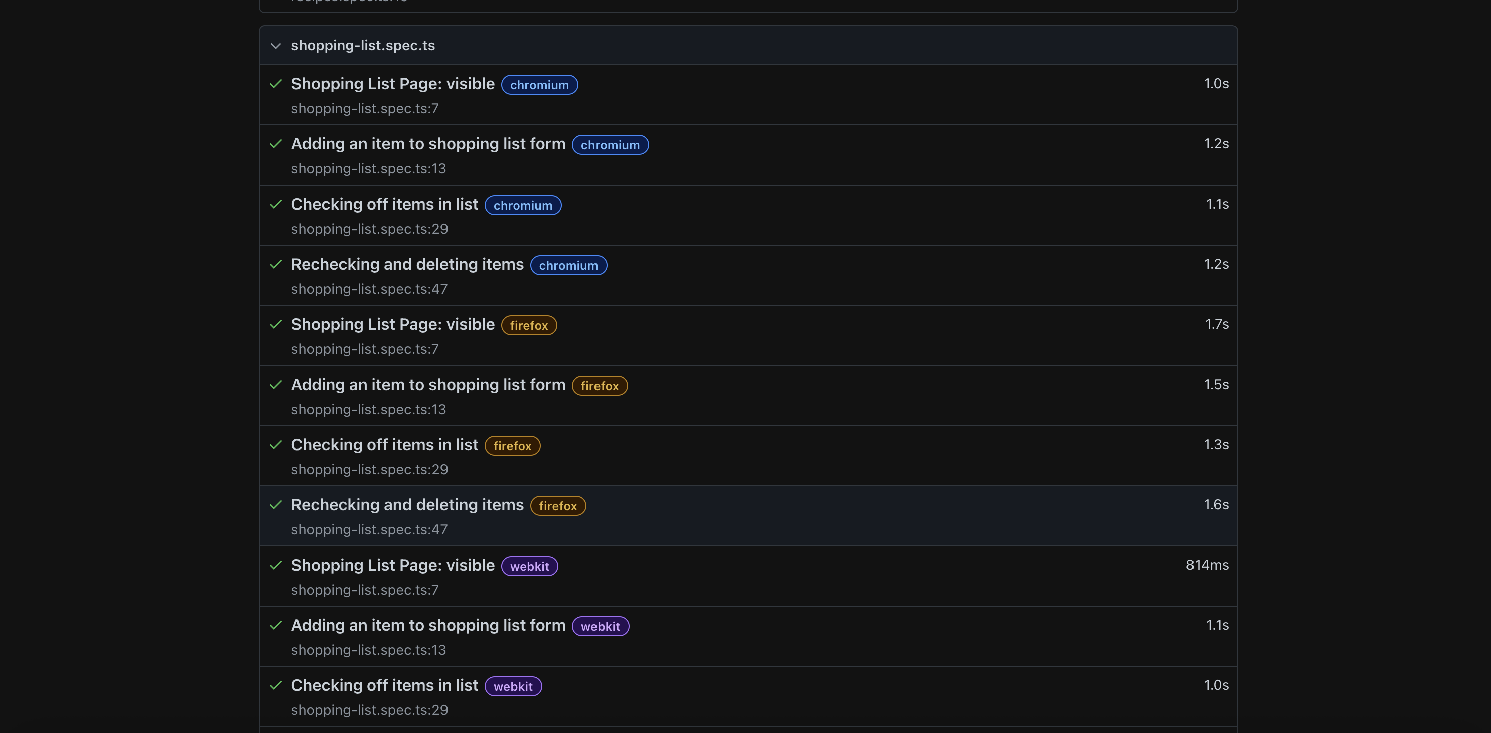 The following are screenshots of our basic acceptance testing for Pantry Pantry. We used Playwright to run our acceptance tests:
